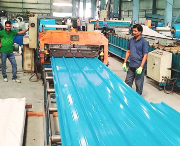 We have In house manufacturing facility of Colour Coated profile sheets in different base material like Galvalume and Galvanised, CEE ZED Purlines, Profile Polycarbonate sheets, Flashings, Metal Deck Sheets , Ready Made Guard Cabins & Wind Driven Roof Vents ,Located at Industrial Estate Rai, NH-1, Sonepat, Harayan with an area of 50,000 Sq. Feet with all imported roll forming machines.